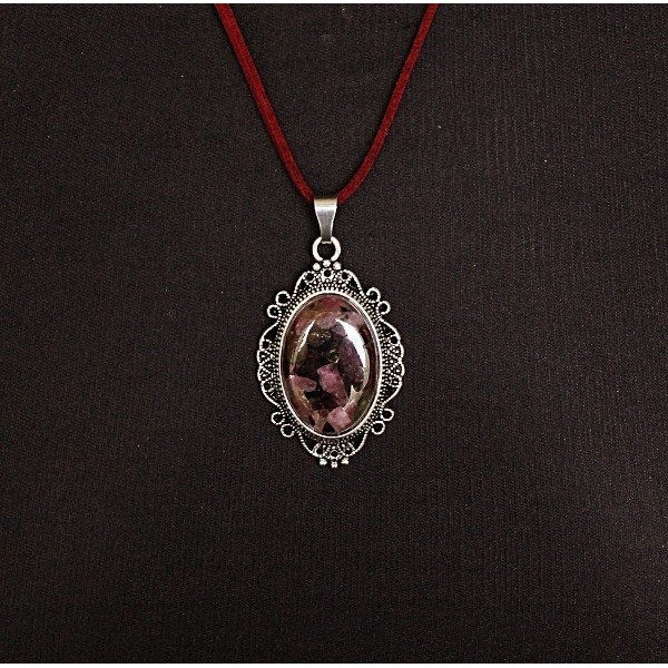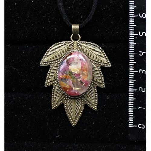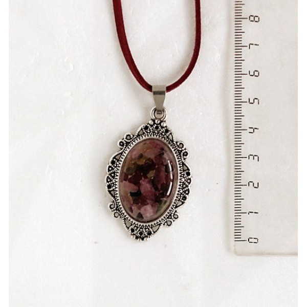 Кулон из граната и турмалина (кабошон-мозаика), овал 30х20мм, ажурная оправа