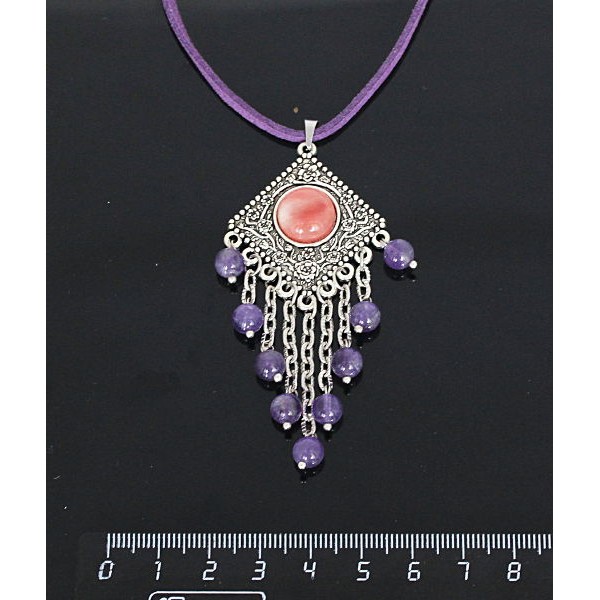Кулон из халцедона розового,"роза", шарик аметист 6мм, круг 12 мм
