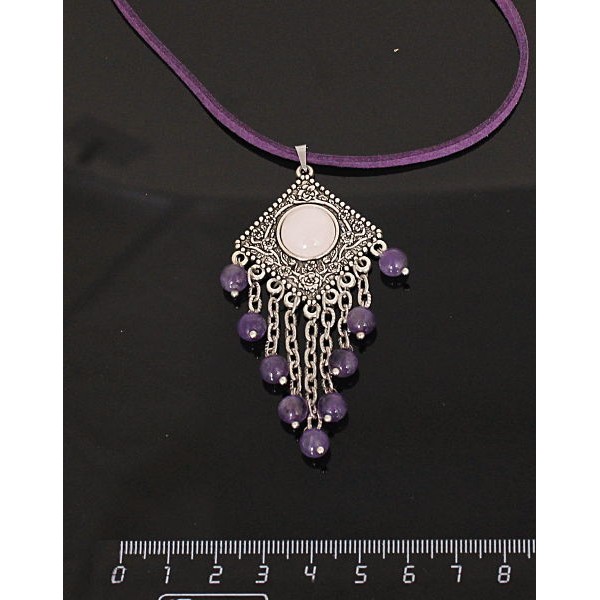 Кулон из розового кварца,"роза", шарик аметист 6мм, круг 12 мм