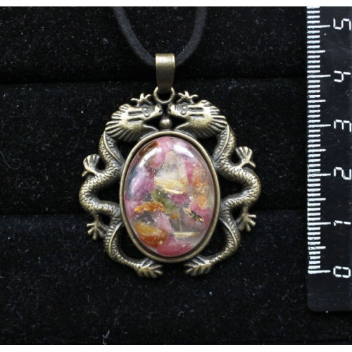 Кулон из турмалина и волосатика (кабашон-мозаика), простой овал 25х18мм