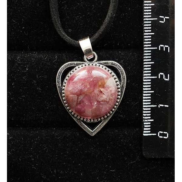 Кулон из турмалина розового (кабошон-мозаика), круг 18мм, оправа "сердечко"