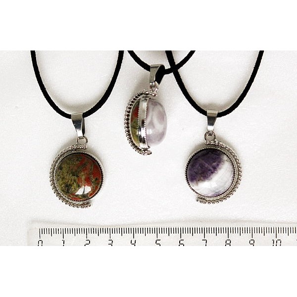 Кулон из унакита и аметиста, круг 20мм, оправа "глобус", двусторонний