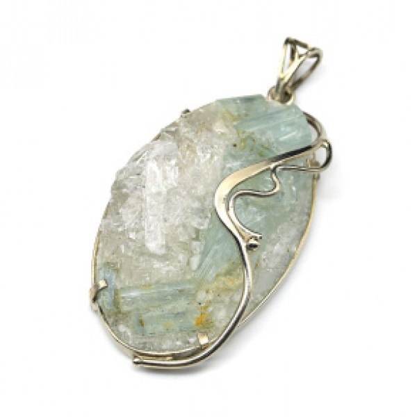 Кулон с аквамарином и горным хрусталем 31*52мм.