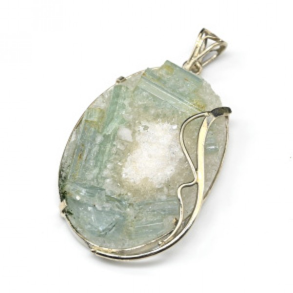 Кулон с аквамарином и горным хрусталем 33*48мм.