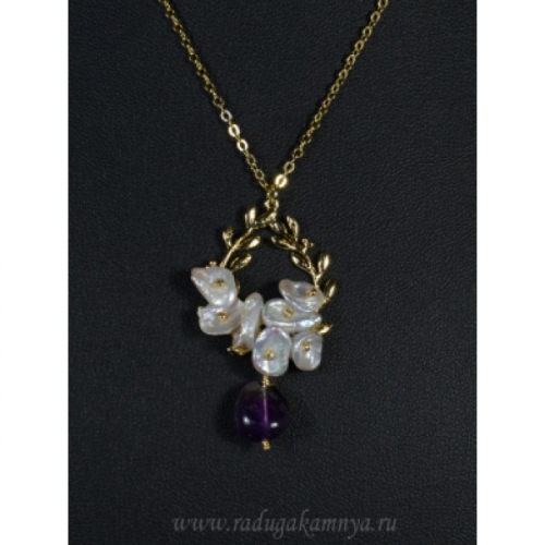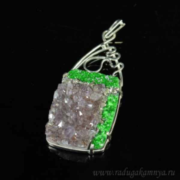 Кулон с аметистом, уваровитом и пиритом 30*72мм.