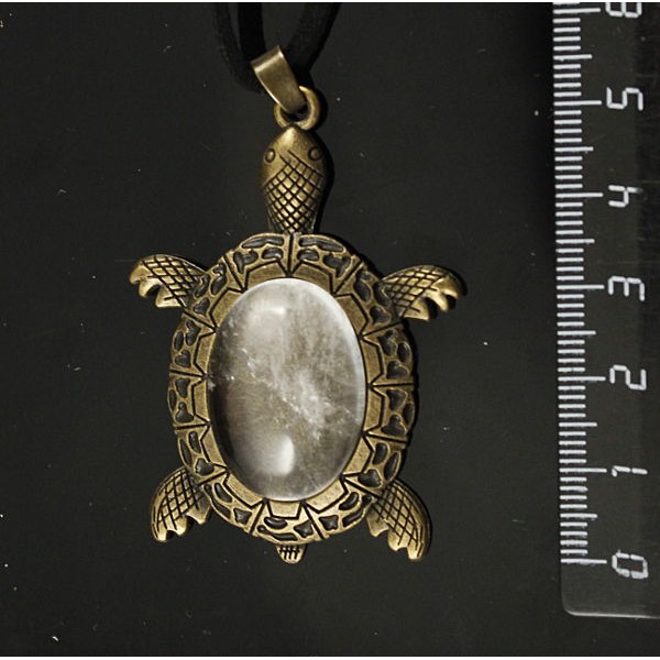 Кулон с горным хрусталем "черепаха", овал 25х18мм, цвет бронза