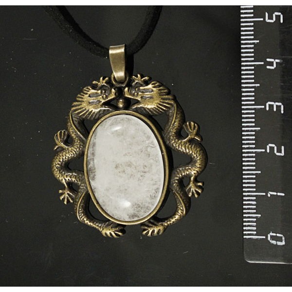 Кулон с горным хрусталем "два дракона", овал 25х18мм, цвет бронза