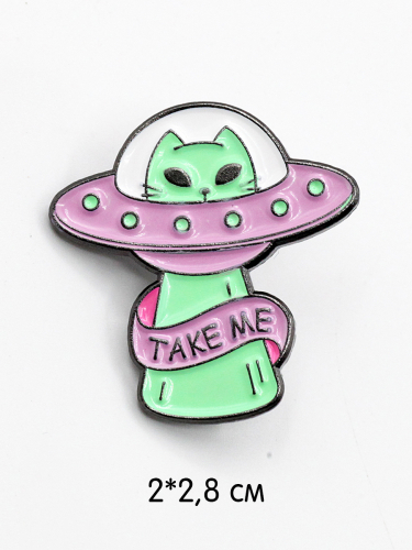 Металлический значок "Cat and nlo 1" Ш*В: 2*2.8см