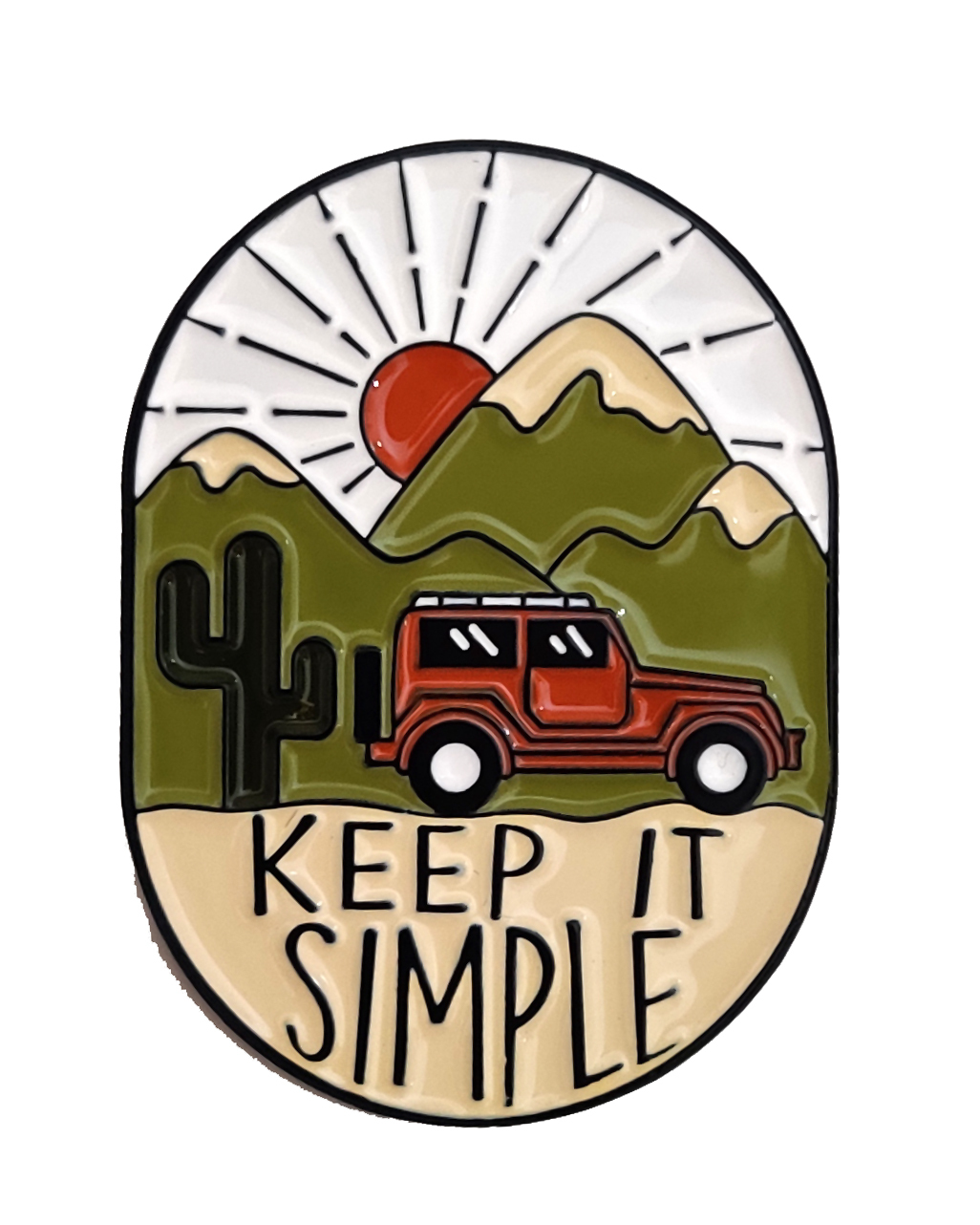 Металлический значок "Travel" Джип, кактус, солнце и надпись keep it simple