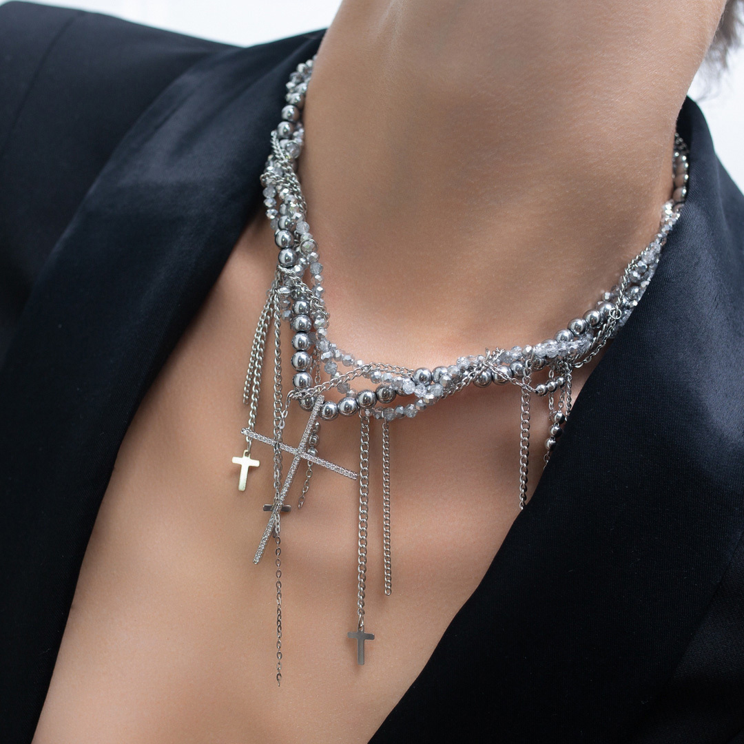 Ювелирный сплав, родиевое покрытие, кристаллы, стеклянный граненый бисер.