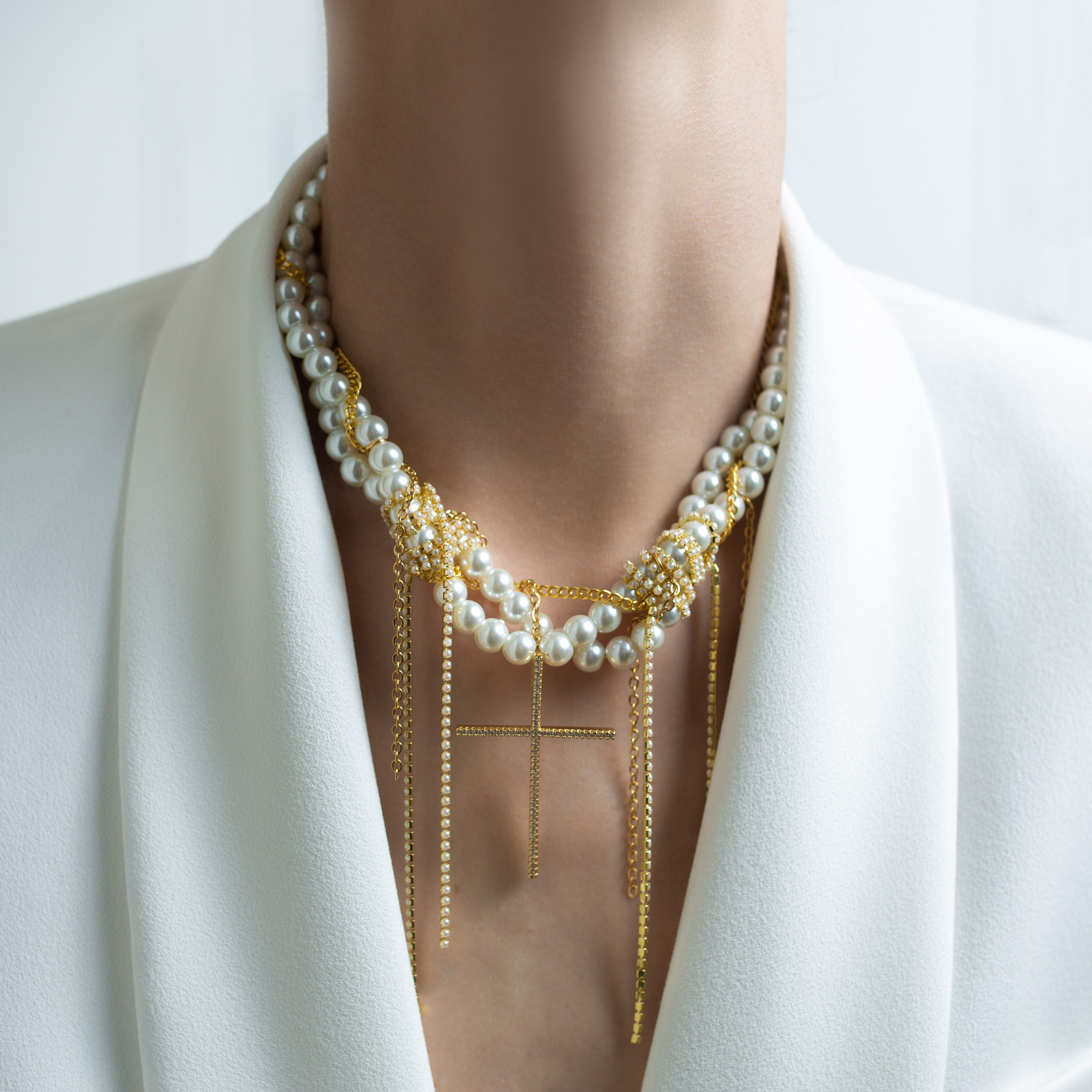 Ювелирный сплав, золочение, кристаллы, имитация жемчуга.