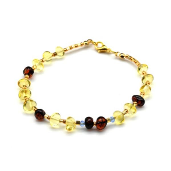 Модный женский браслет с янтарем галтовка цвет лимонный, коньячный, 17см