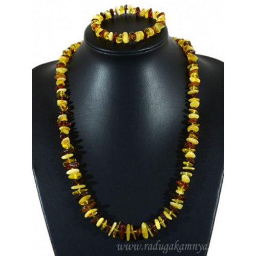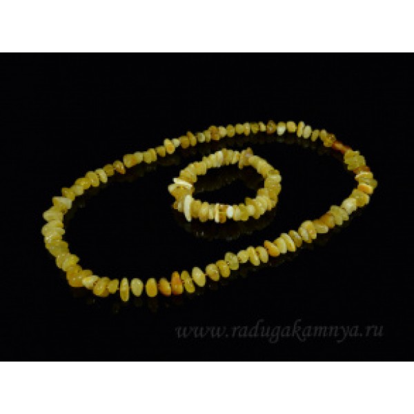 Набор из янтаря бусы и браслет крошка молочно-медовый, 55см