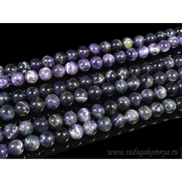 Нитка аметист темный (фиолетовый) шарик 12мм гладкий