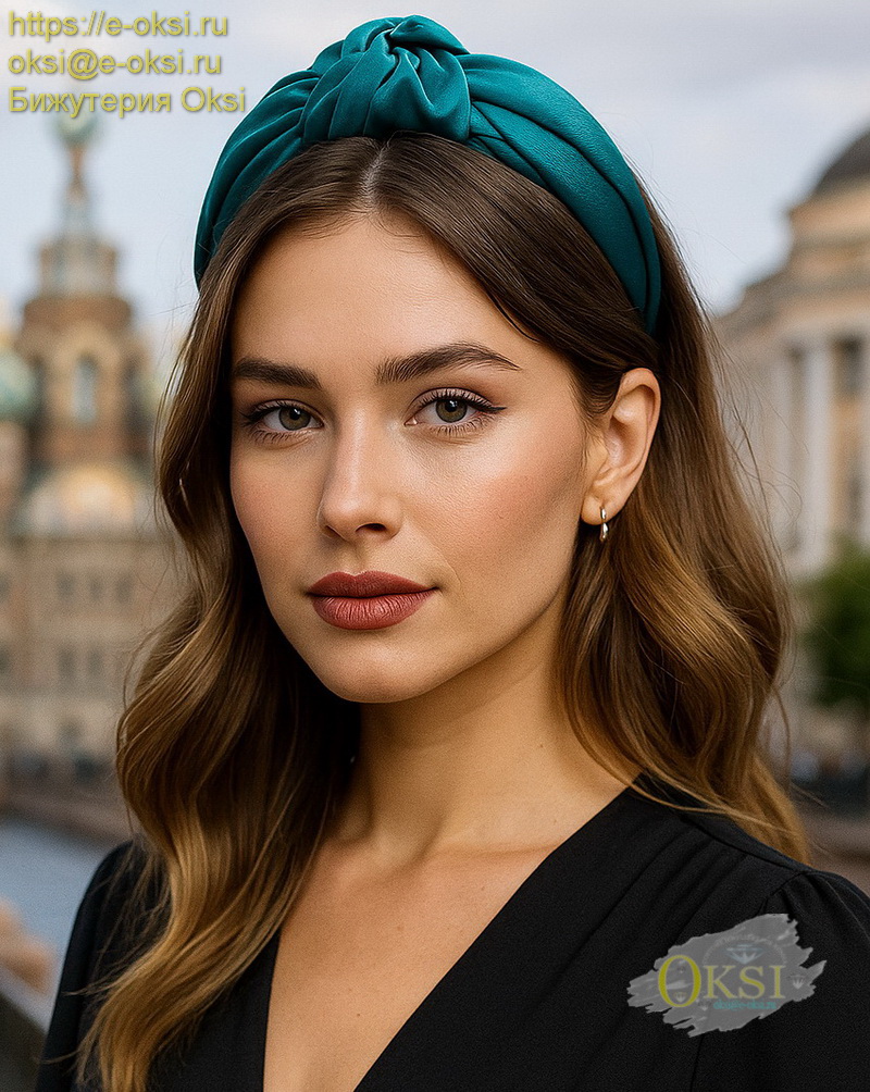 Роскошный широкий ободок из плотного шёлка эффектного изумрудно - синего оттенка, обязательно пригодится на каждый день или на вечер, разбавит и украсит любой скучный наряд. Лёгкий, удобный и комфортный, не жмёт и не давит голову.