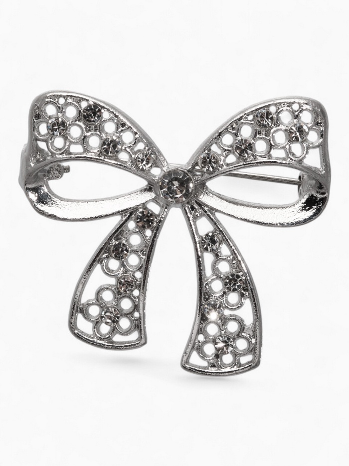 Пусть ваш образ сияет легкостью и кокетливостью с брошь-бантом, представленной в свежем и нежном дизайне. Белоснежный атласный узел в сочетании с переливающейся серебряной отделкой излучает неподдельную грацию и красоту, дополняя элегантный образ утонченностью и шармом.