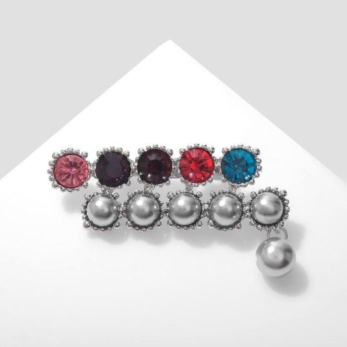 Брошь «Бусины и стразы», цветная в серебре