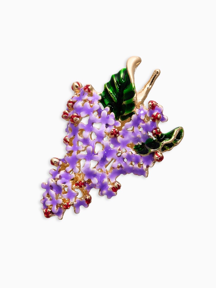 Добавьте в свою жизнь ощущение весны и аромата сирени с изящной брошью, вдохновленной этими нежными цветами, переплетёнными в фиолетовую симфонию и украшенными золотой отделкой. Миниатюрный аксессуар наполнит ваш образ сладким благоуханием и подчеркнёт вашу склонность к красоте и чувствительности.