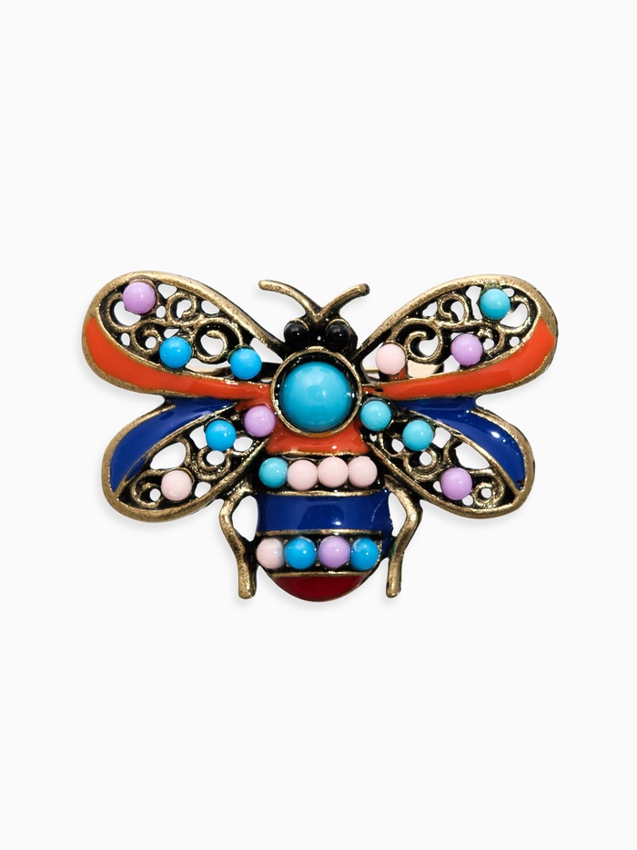 Погрузитесь в мир изысканных украшений с этой удивительной брошью, которая станет ярким акцентом вашего образа. Этнический стиль и оригинальный дизайн в виде насекомого делают её уникальной и запоминающейся. Чернёное золото в сочетании с разноцветной эмалью создает эффектный контраст, подчеркивая вашу индивидуальность и вкус.