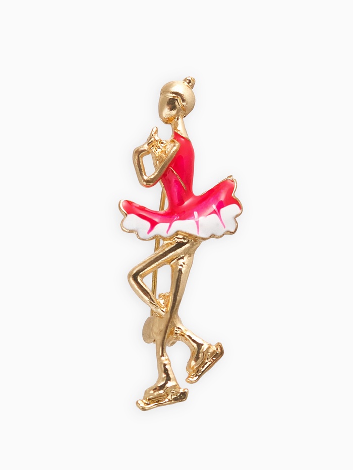 Брошь «Фигуристка», цвет бело-малиновый в золоте