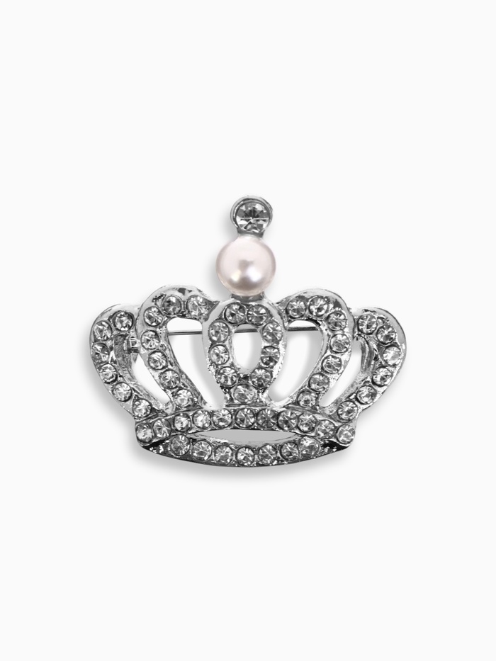 Воссоздайте королевскую атмосферу и прибавьте вашему образу нотку величия с эксклюзивной брошью-короной. Изящный головной убор, выполненный в холодных белых и серебристых тонах, привлекает внимание к лицу и символизирует власть, достоинство и аристократизм.
