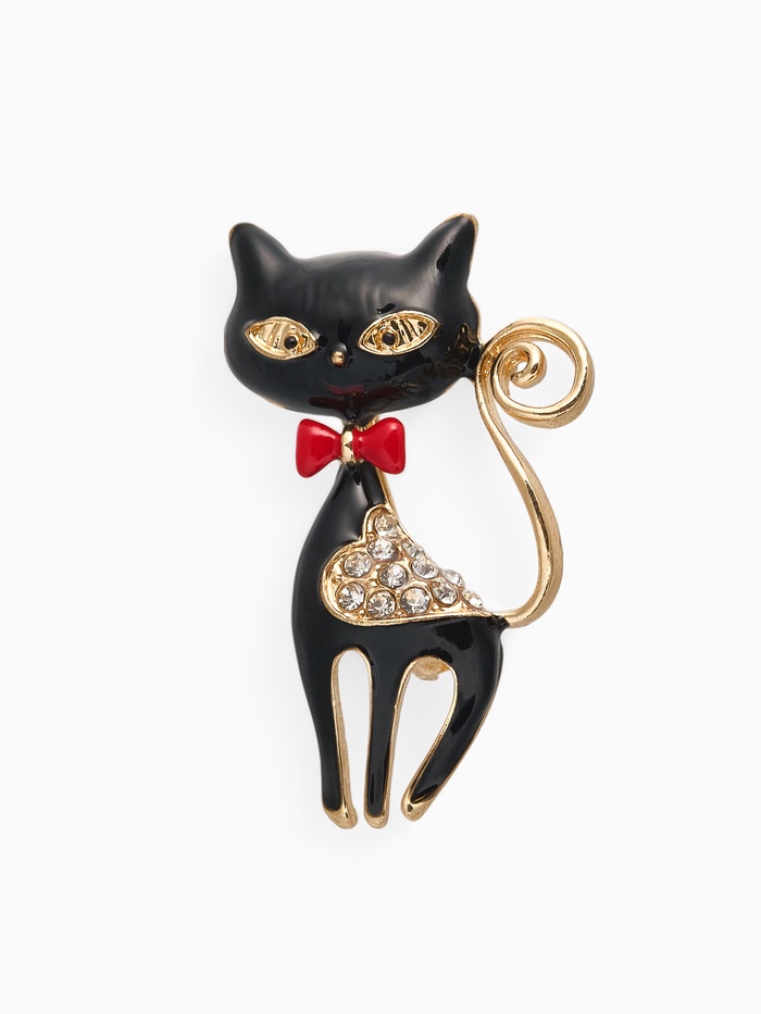 Брошь «Кошечка» с сердечком, цвет чёрный в золоте