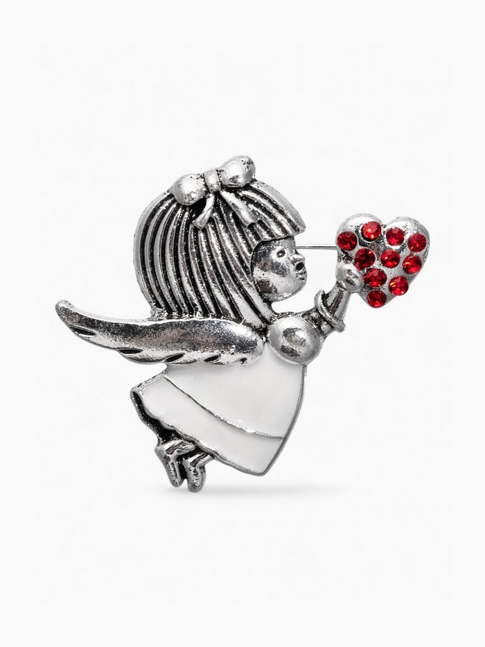 Брошь «Купидон» девочка, цвет красно-белый в чернёном серебре