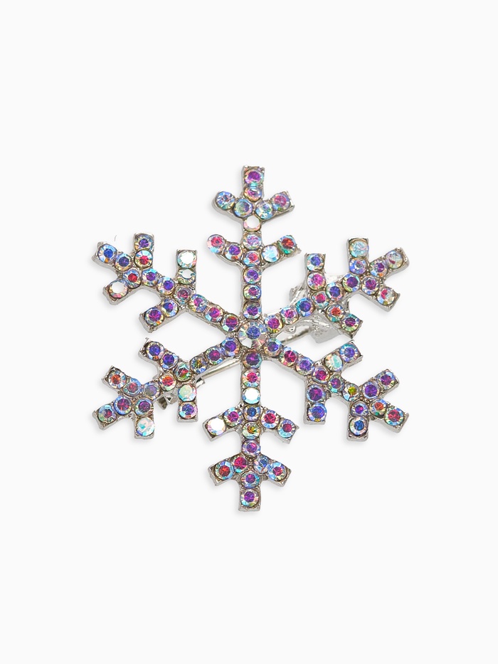Маленькая брошь в форме снежинки с радужным переливом на серебристом металлическом основании добавит праздничного блеска и изящества вашему образу. Компактный размер 3 см делает украшение универсальным акцентом, который легко впишется как в повседневный, так и в торжественный наряд.