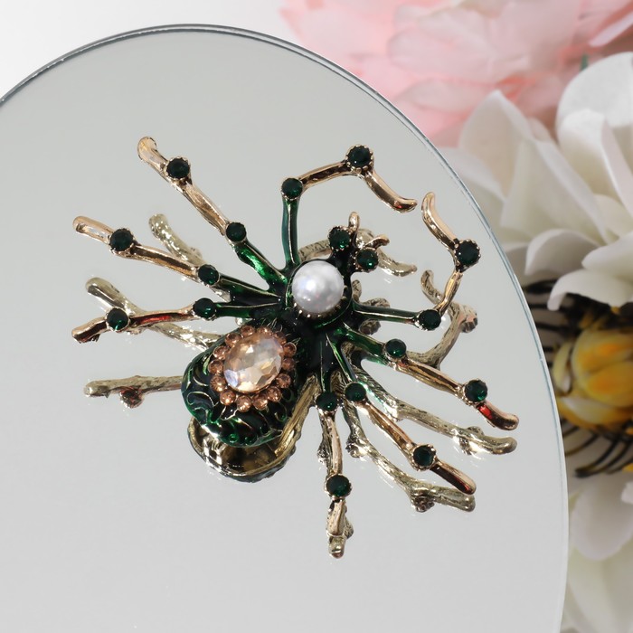 Брошь «Паук», цвет коричнево-зелёный в чернёном розовом золоте