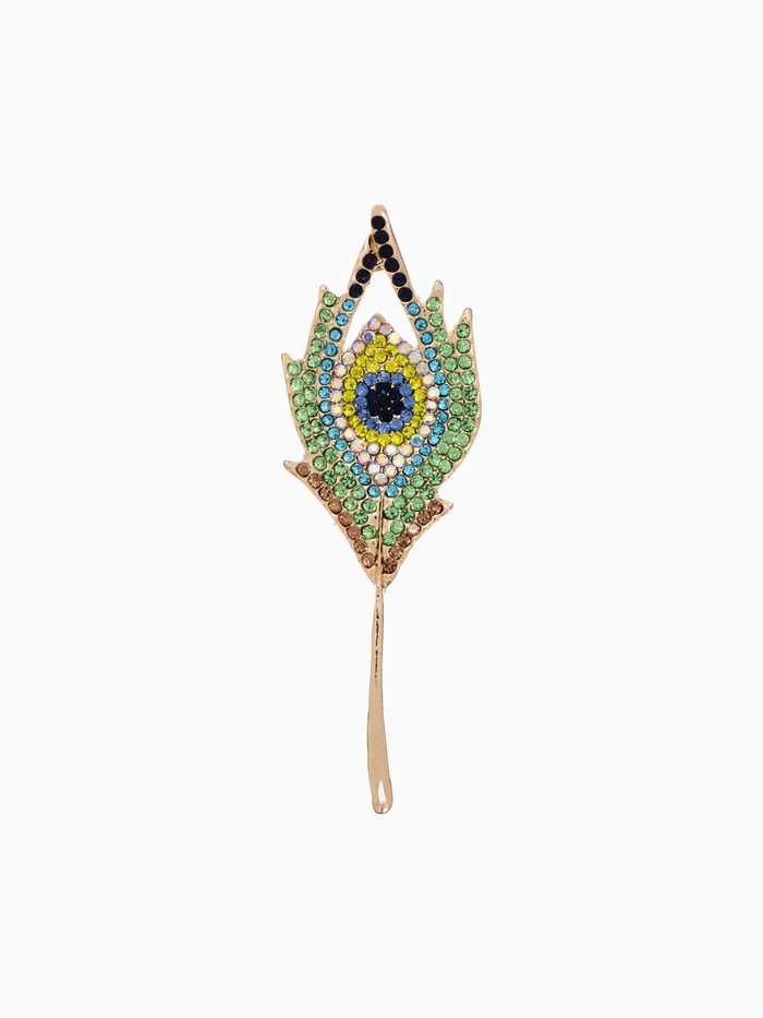 «Перо» выполнено из высококачественного металла с покрытием в желто-золотистых оттенках, дополнительно украшено стразами и камнями, напоминающими огонь и пламя птицы Жар. Тонкие детали фона, создающие иллюзию перьев, детально проработаны и тщательно подобраны по цвету, делая брошь полноценной частью вашего образа.