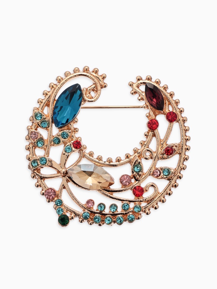 Погрузитесь в мир ярких эмоций и утонченного стиля с этой великолепной брошью в форме подковы. Длина 4,5 см делает её идеальным акцентом для любого образа, а разноцветные стразы в золотой оправе придают ей особую привлекательность и шарм.