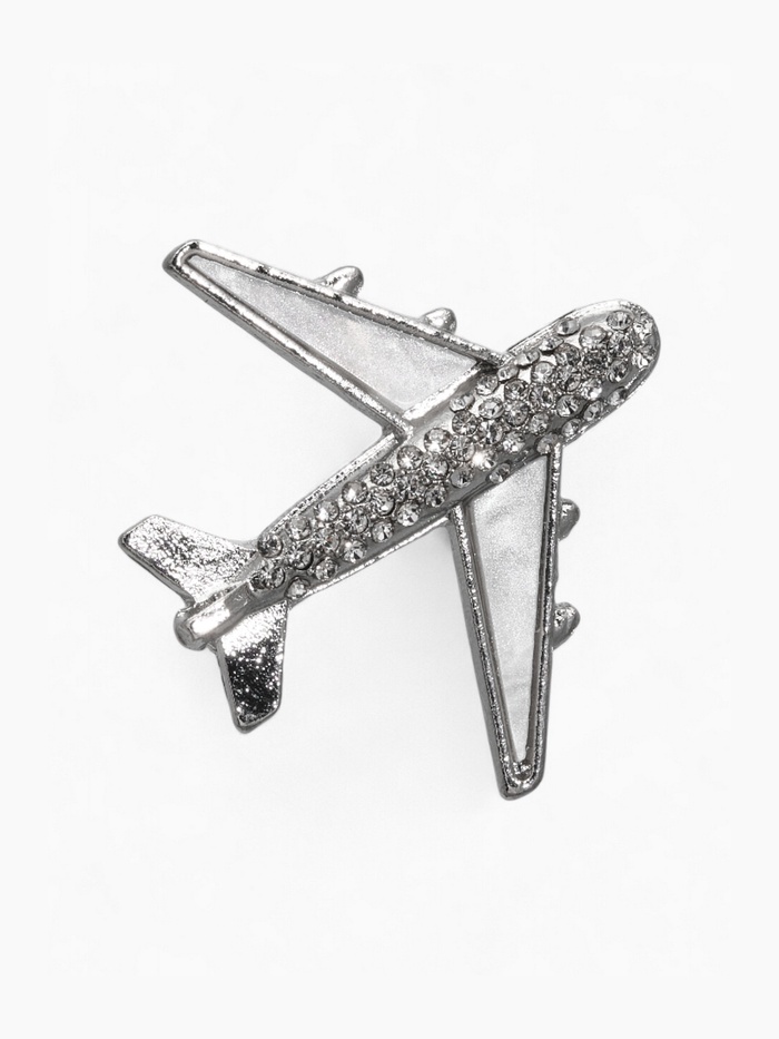 Брошь «Самолет», цвет белый в серебре