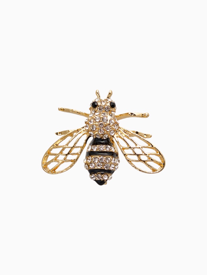 Брошь «Шмель», цвет чёрно-белый в золоте