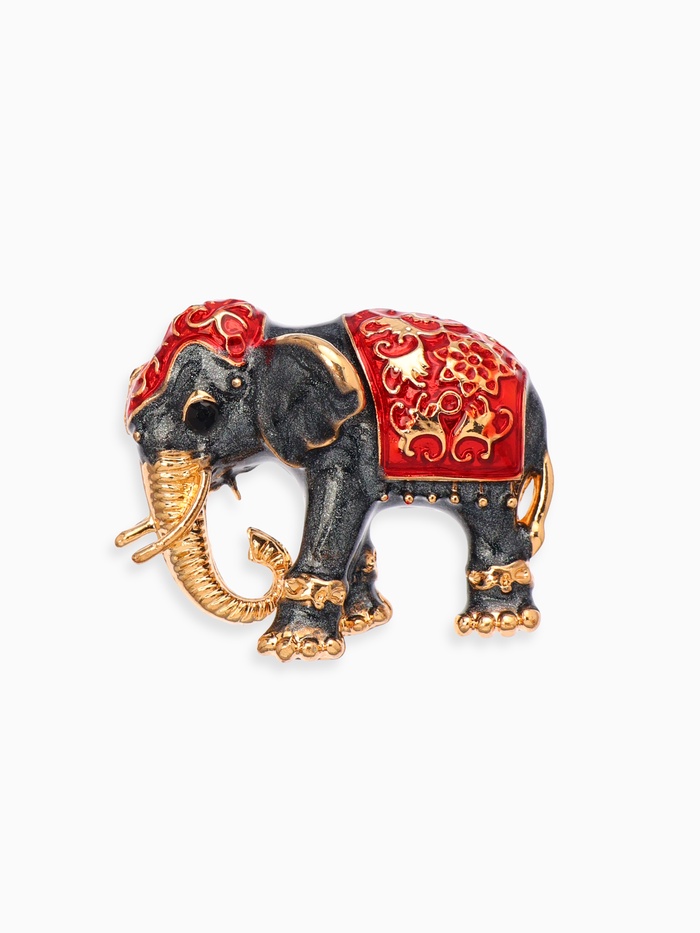 Брошь «Слон индийский», цвет красно-серый в золоте