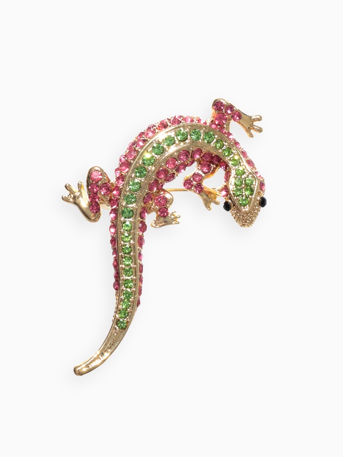 Погрузитесь в мир ярких красок и экзотики с этой великолепной брошью в виде тропической ящерицы. Розово-зелёные оттенки, дополненные золотистой фурнитурой, создают уникальный образ, который привлекает внимание и добавляет изюминку в любой наряд. С длиной 5,7 см, эта брошь станет идеальным акцентом как для повседневного, так и для праздничного образа.