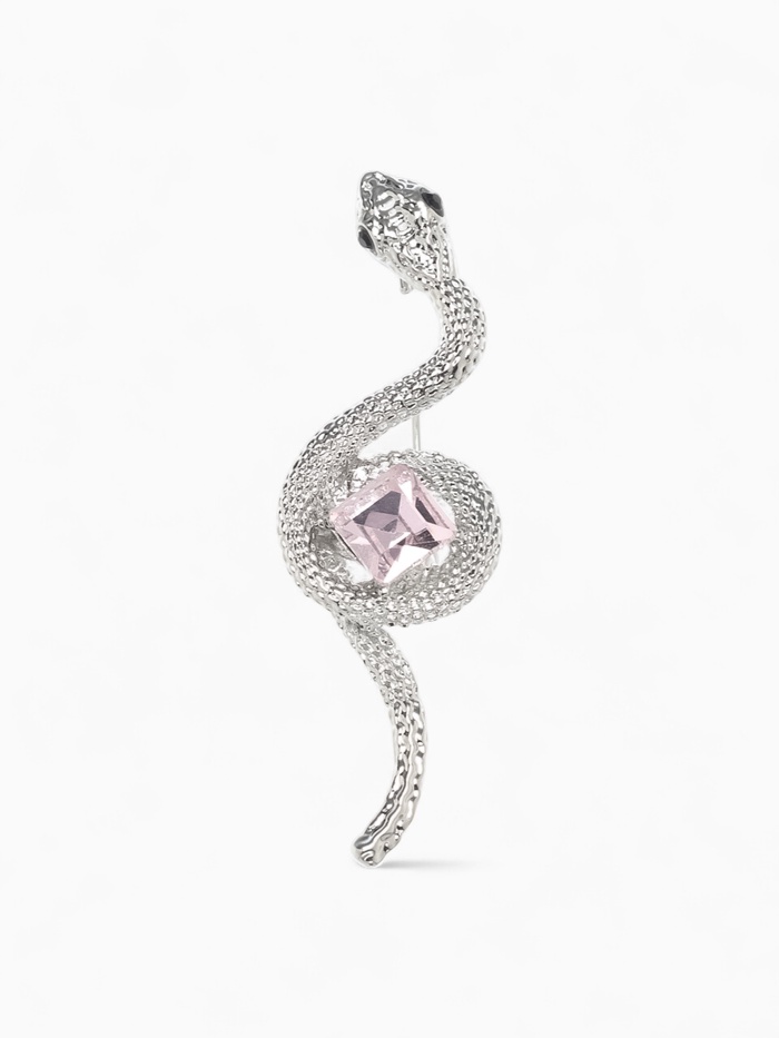 Элегантная брошь в форме змеи с ромбовидным узором — это сочетание изящества и символизма, воплощённое в изысканном серебряном оттенке с нежными розовыми вставками из стекла. Компактная длина 4,5 см делает её универсальным украшением, способным дополнить как повседневный, так и праздничный образ.
