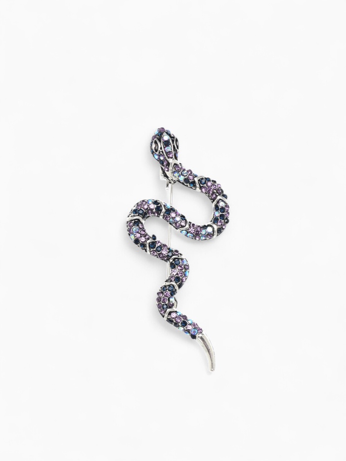 Брошь, украшенная яркими стразами и эмалью, привлекает внимание своим динамичным дизайном, который словно передаёт движение змея. Она идеально подходит как для повседневной носки, так и для особых случаев, добавляя изюминку и характер любому наряду.