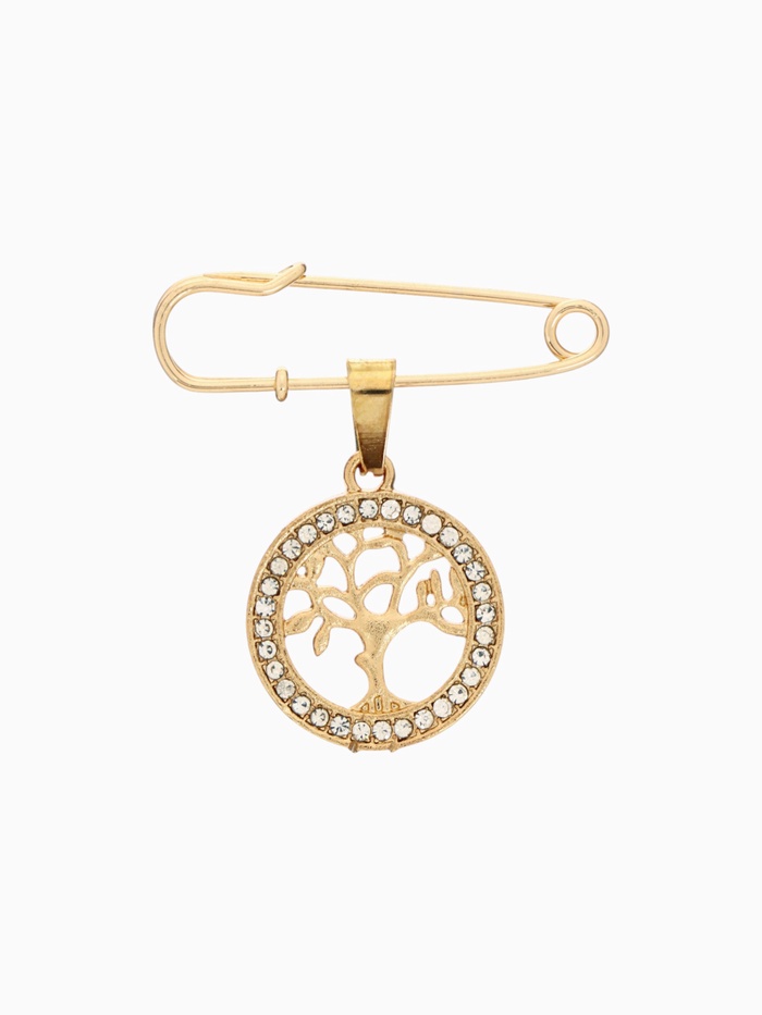 Булавка-оберег с подвеской «Дерево жизни» 3.5 см, белая в золоте