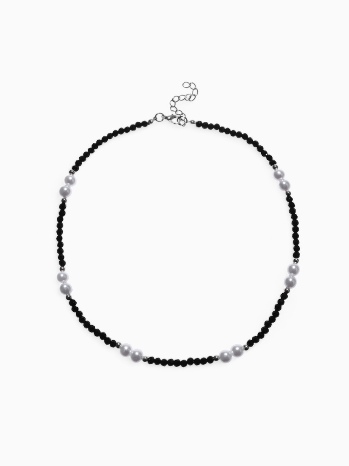 Погрузитесь в мир утончённости и стиля с этими изысканными бусами, которые станут незаменимым элементом вашего гардероба. Чёрно-белые бусины, обрамлённые серебряными акцентами, создают гармоничное сочетание классики и современности. Их длина 40 см прекрасно подходит как для повседневных, так и для вечерних образов, придавая любому наряду элегантный штрих.