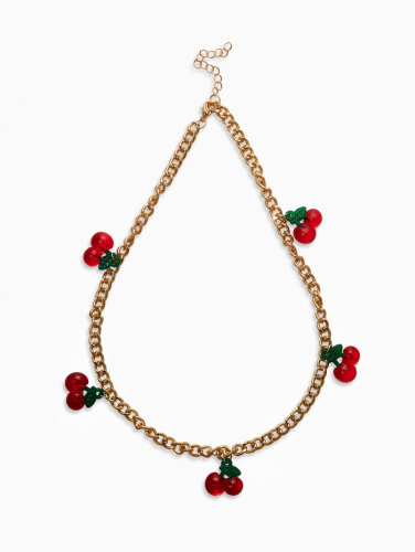 Изюминка аксессуара заключается в яркой красной вишенке, создающей контраст с мягким сиянием золотых элементов. Цепочка выполнена из высококачественного металла, покрыта позолотой, придавая изделию изысканный блеск и долговечный вид.