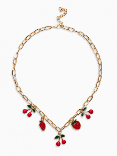 Украсьте шею изысканным ожерельем с подвесками в виде спелых ягод вишен и клубники. Созданное в красном цвете с золотистыми вставками, украшение длиной 40 см мгновенно добавит бодрости и энергичности вашему стилю. Эмалевое покрытие обеспечивает защиту от коррозии и повреждений, гарантируя длительную сохранность яркого внешнего вида изделия.