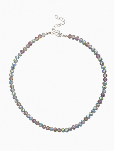 Чокер из бисера «Хрусталь» бензиновый в серебре, 37 см + 5 см доп, цепочка