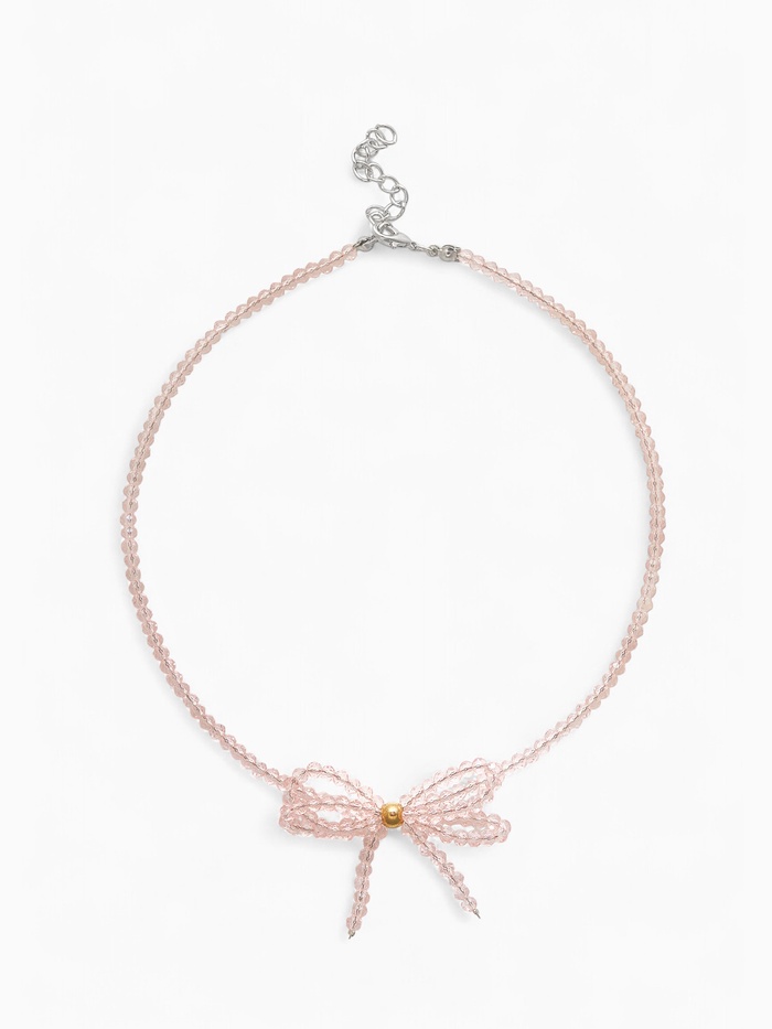 Чокер из бусин «Хрустальный бантик», 33 см + 5 см цепочка, розовый в серебре