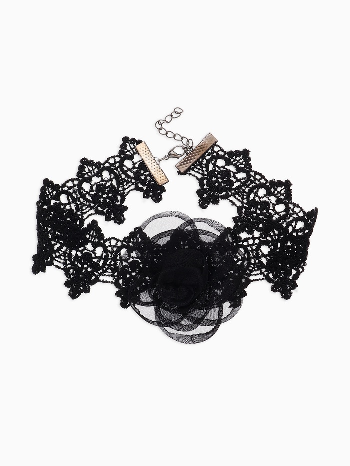 Чокер «Танго» цветок в ажуре, цвет чёрный, 30 см