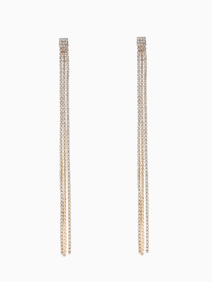 Клипсы для ушей висячие со стразами QF «Лёд», классика, цвет белый в золоте