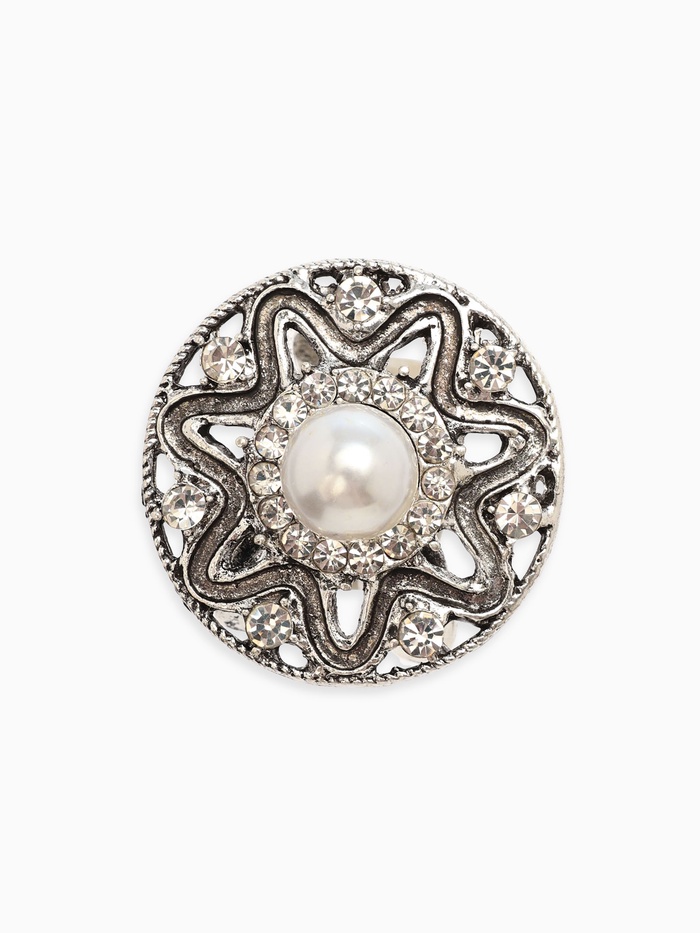 Кольцо для платка «Цветок в круге», белое в чернёном серебре