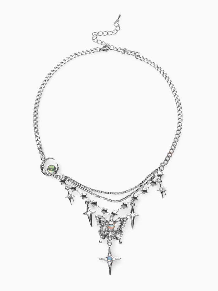 Представляем колье «Бабочка», воплощающее в себе изящность и волшебство природы, объединяющее два прекрасных мотива — бабочку и звезду. Ослепительно-белые бусины и сияющая серебряная сетка создадут гармоничный ансамбль, подчеркивая вашу индивидуальность и стиль.