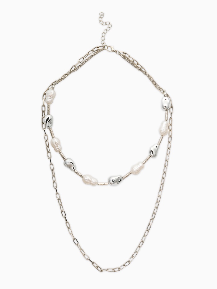 Колье цепочка «Жемчуг барокко», удлиненное, 2 яруса, белое в серебре