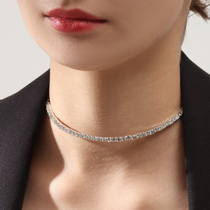 * Краткость и точность: единственная нить из белых элементов подчеркивает удлиненность шеи, визуально уменьшая объемы и корректируя фигуру.
