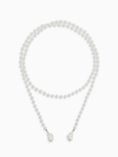 * Краткость и точность: единственная нить из белых элементов подчеркивает удлиненность шеи, визуально уменьшая объемы и корректируя фигуру.